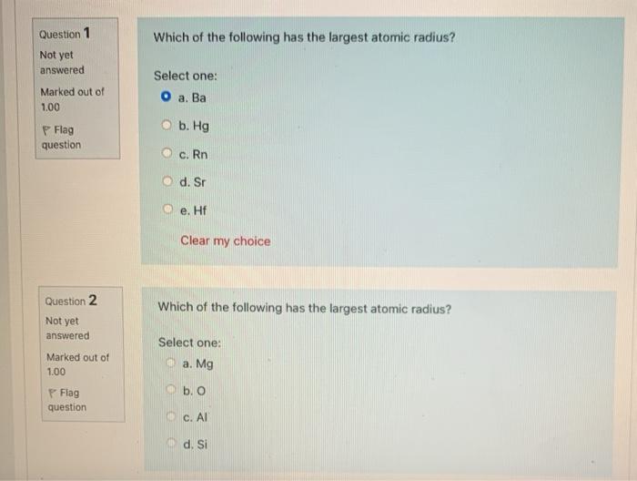 Which of the Following Has the Largest Atomic Radius